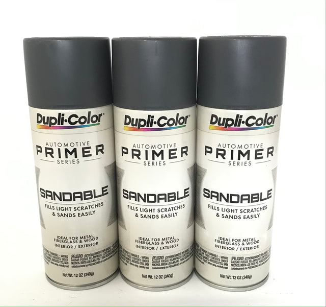 This is a 3 PACK of 12 oz Aerosol spray can of Duplicolor GRAY HOT ROD Sandable Filler Primer.