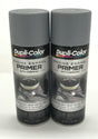 Two 12 oz aerosol spray cans of Duplicolor gray engine enamel primer with ceramic.