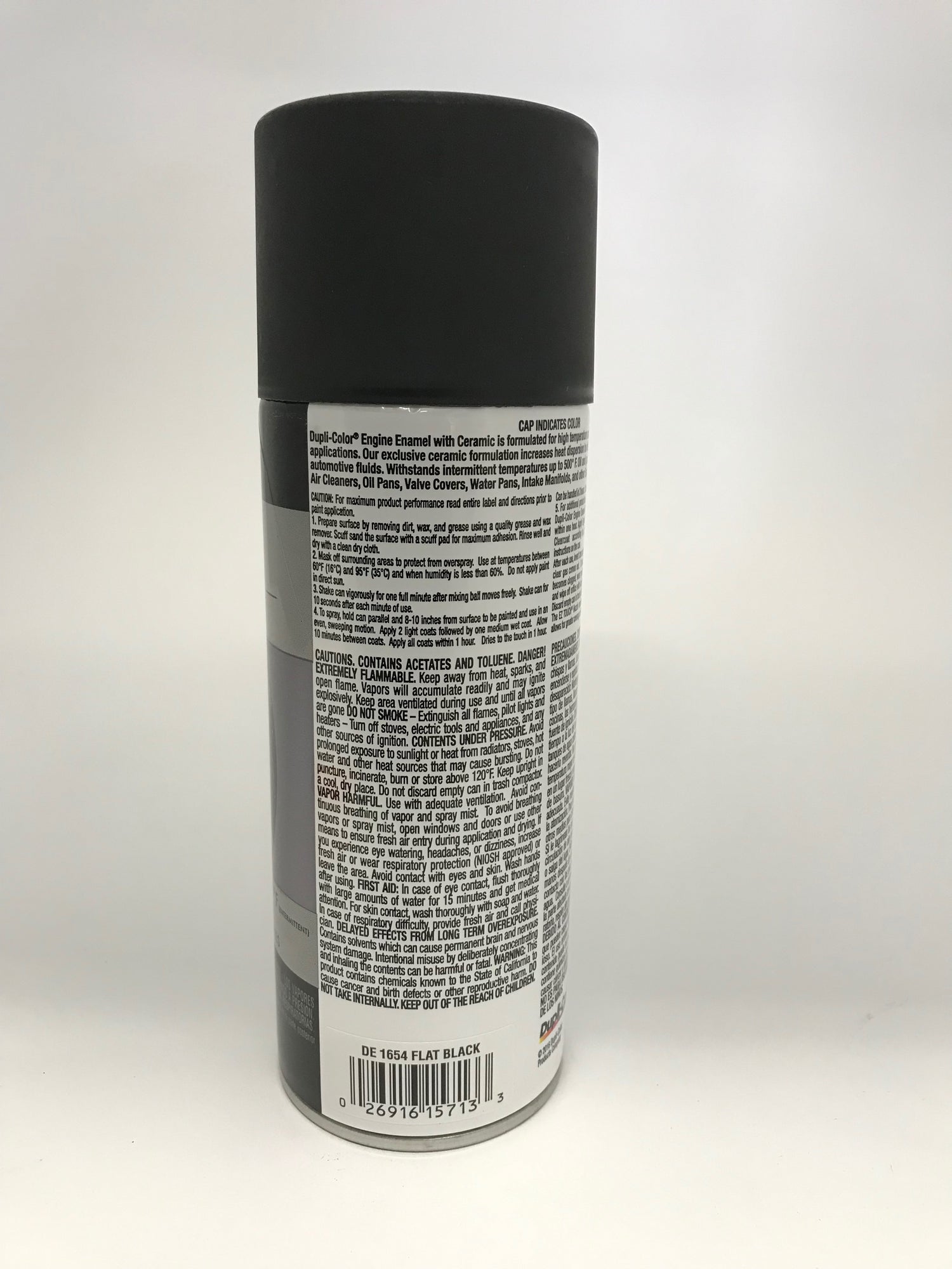This is an 12 oz Aerosol spray can of Duplicolor FLAT BLACK Engine Enamel with Ceramic.