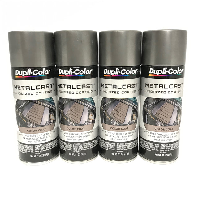 Four 11 oz aerosol spray cans of Duplicolor MetalCast SMOKE Anodized Coating.