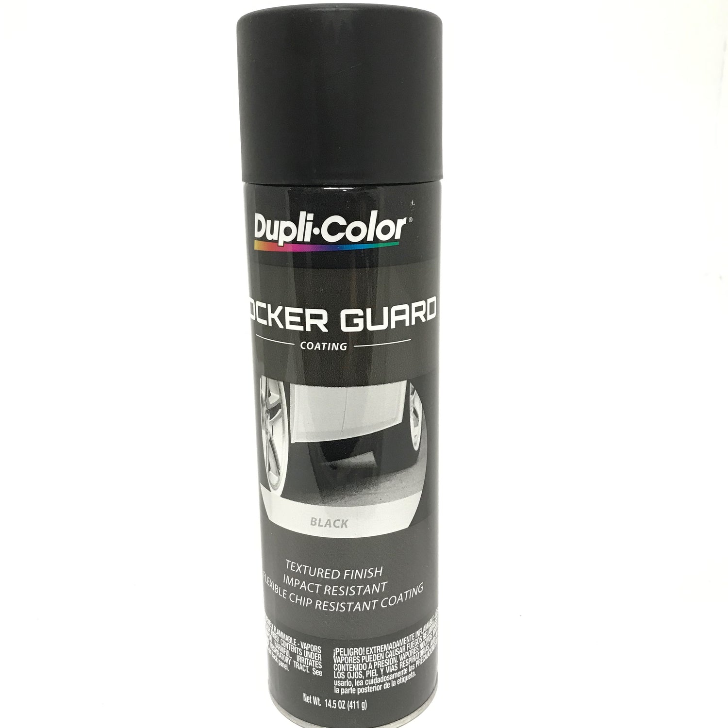 This is a 14.5 oz Aerosol spray can of Duplicolor BLACK Rocker Guard Coating.