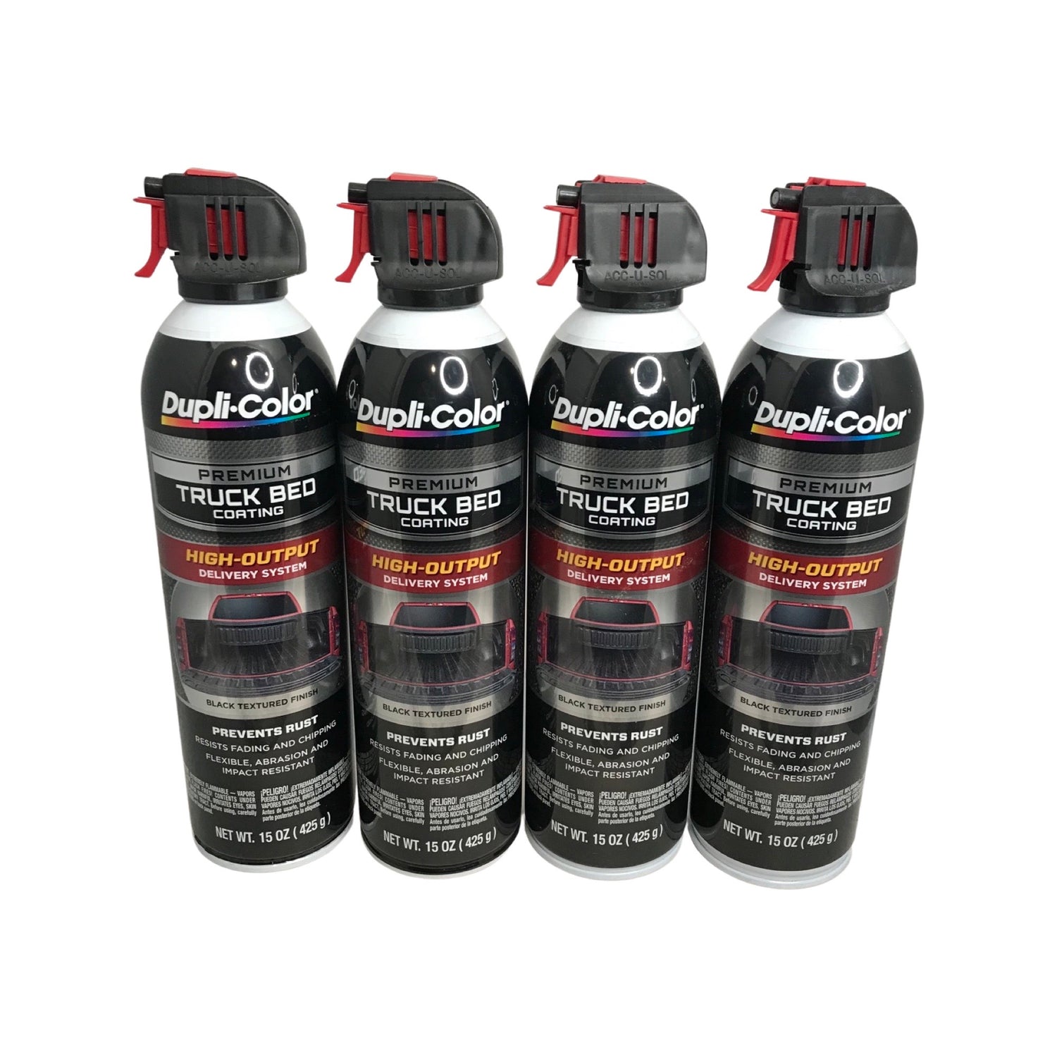 You bidding on four 15oz. cans of Duplicolor Premium Truck Bed Coating Black Paint.