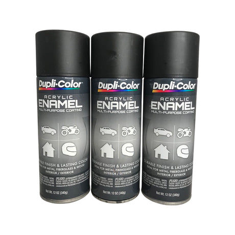 Dupli-Color DA1605 - 3 Pack General Purpose Acrylic Enamel Coating Flat Black - 12 oz. ea.