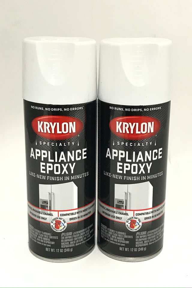 Krylon Specialty Appliance Epoxy provides a renewed, durable, stain & scratch -resistant finish to appliances; can be cleaned with most household cleaners. This product dries in 30 minutes, is scrubbable and withstands grease and grime. No runs, No drips, No errors.