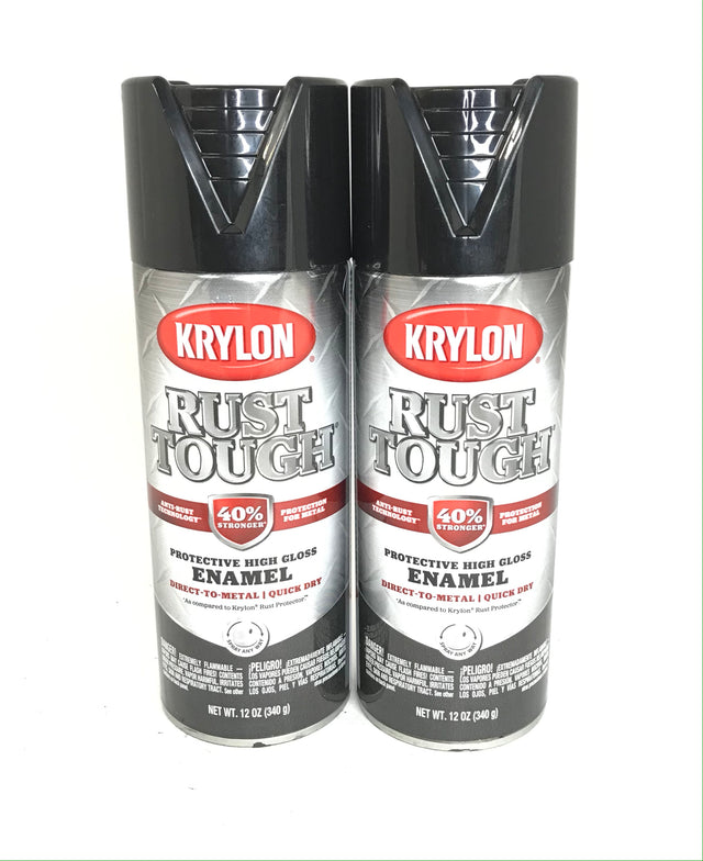 This is TWO 12 oz Aerosol cans of Krylon GLOSS BLACK Rust Tough Protective Enamel.