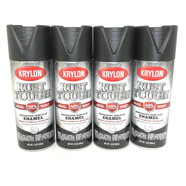 KRYLON RTA9203-4 PACK SEMI-FLAT BLACK Rust Tough Protective Enamel - Quick Dry - 40% Stronger - 12 oz Aerosol