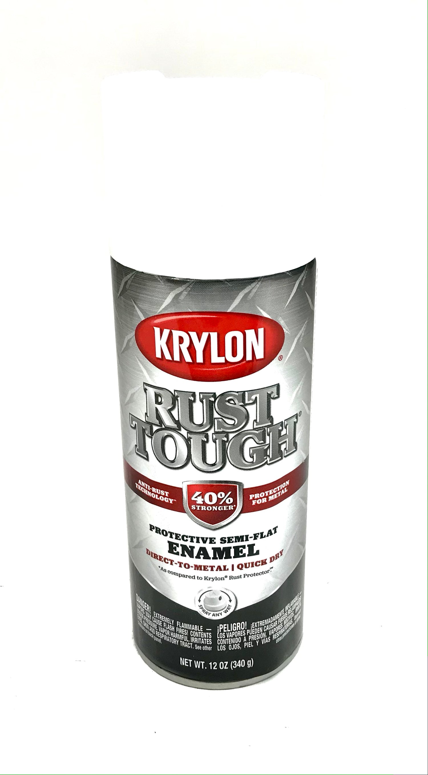 This is a 12 oz Aerosol can of Krylon SEMI-FLAT WHITE Rust Tough Protective Enamel.