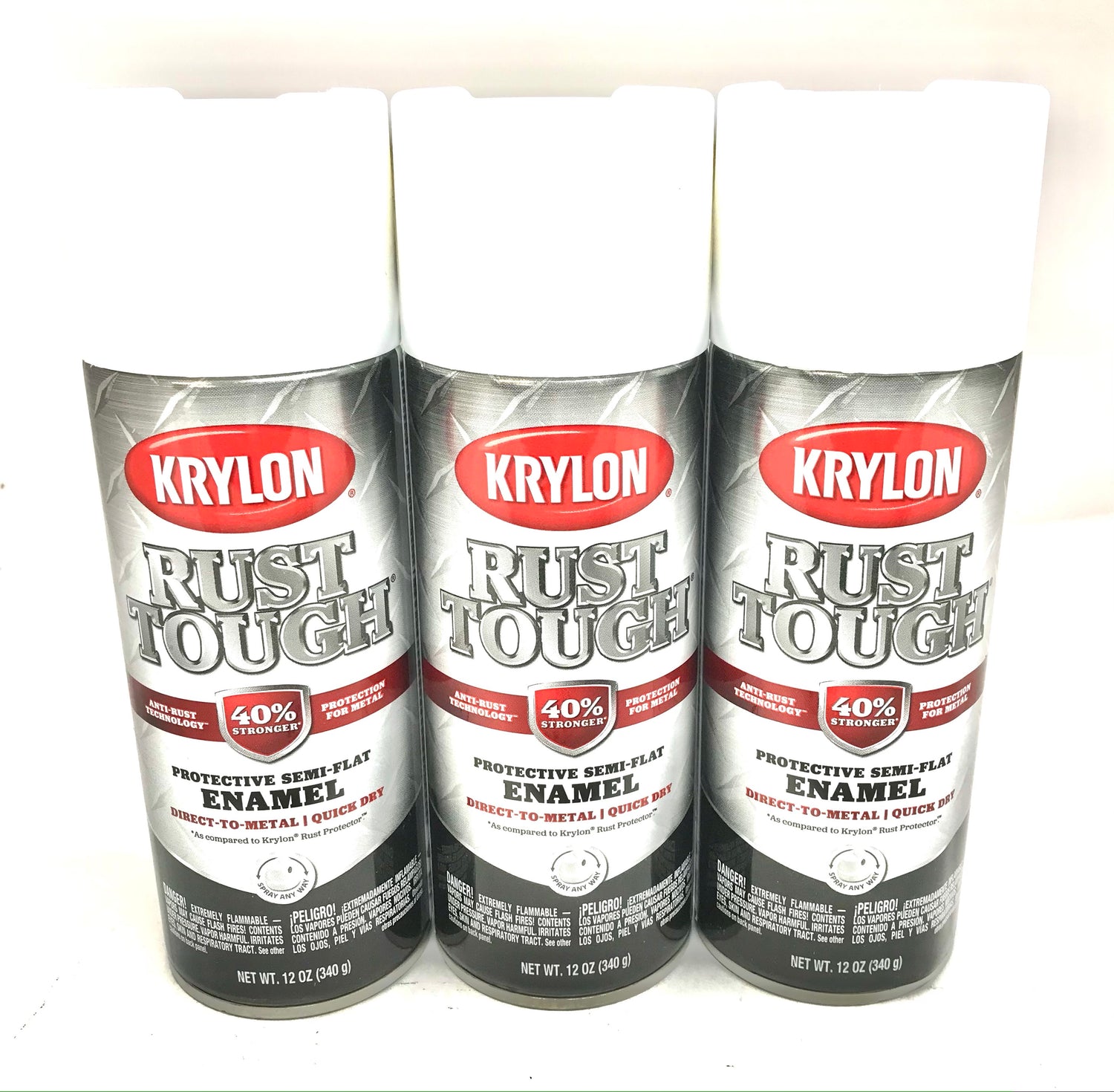 This is THREE 12 oz Aerosol cans of Krylon SEMI-FLAT WHITE Rust Tough Protective Enamel.