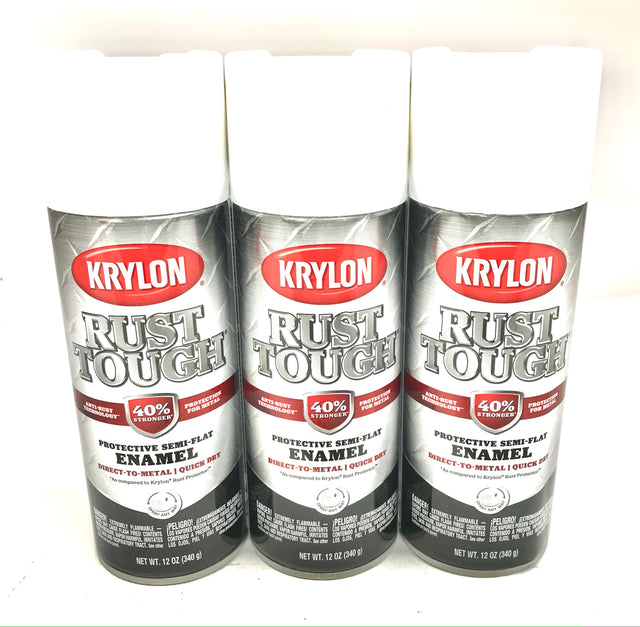 KRYLON RTA9201 SEMI-FLAT WHITE Rust Tough Protective Enamel - Quick Dry - 40% Stronger - 3 PACK