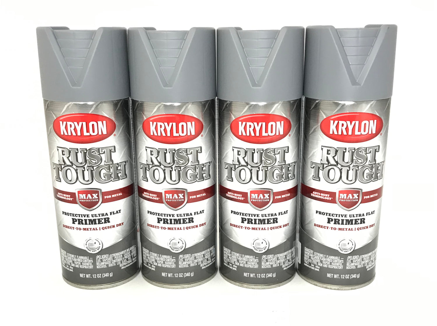 This is FOUR 12 oz Aerosol cans of Krylon Rust Tough GRAY Primer.