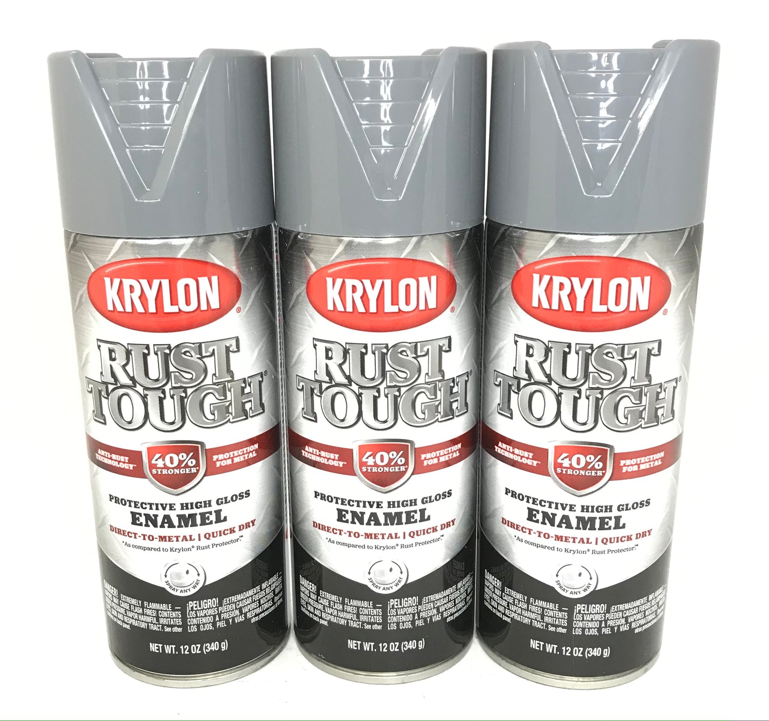 This is THREE 12 oz Aerosol cans of Krylon Rust Tough GLOSS Battleship Gray Primer.