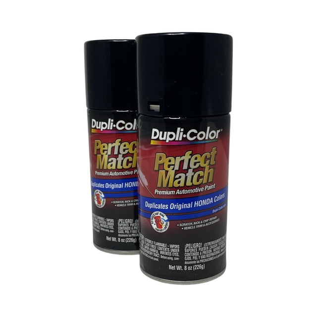 Two 8 oz. cans of Dupli-Color BHA0982 Honda Nighthawk Black Pearl Perfect Match Automotive Spray Paint.