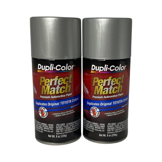 Two 8 oz. cans of Dupli-Color BTY1602 Toyota Lunar Mist Perfect Match Automotive Spray Paint.