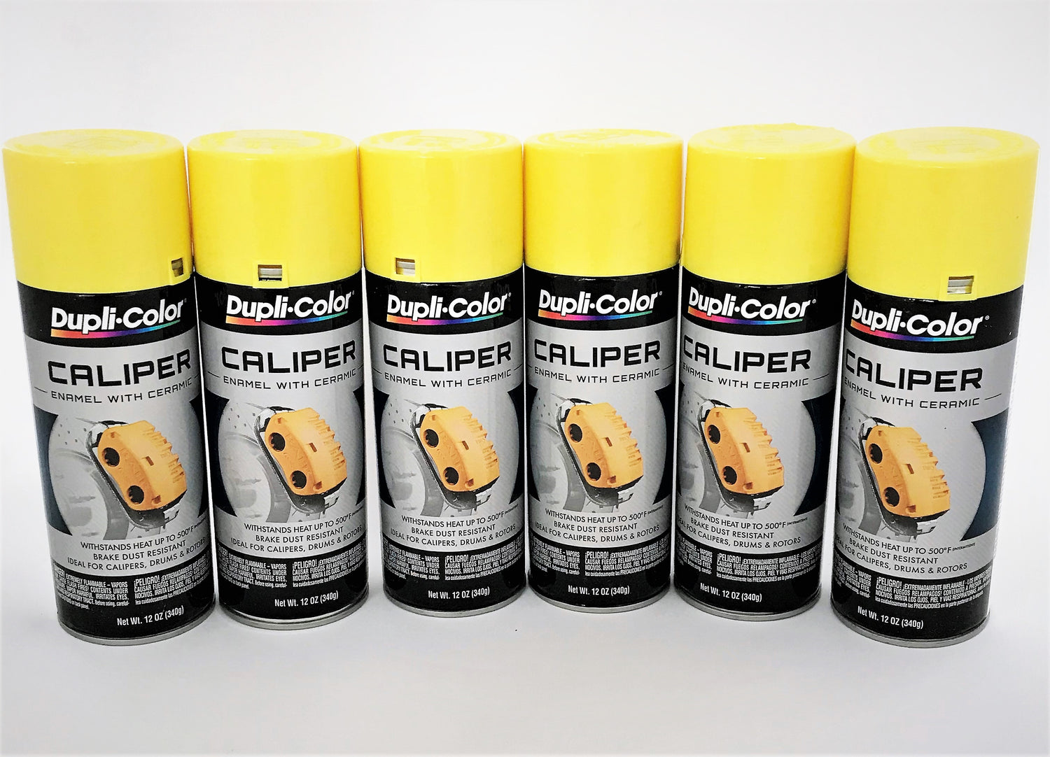 Six 12 oz Aerosol spray cans of Duplicolor Yellow Caliper Paint w/ Ceramic.