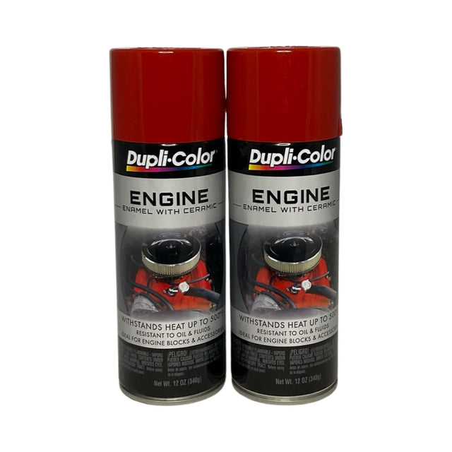 Two 12 oz. cans of Duplicolor DE1605 Ford Red Engine Enamel Paint with ceramic.