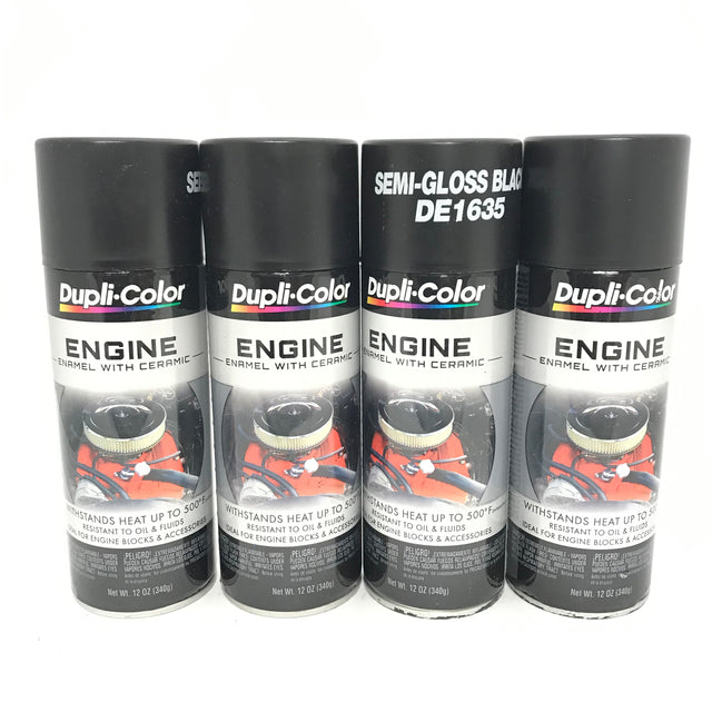 This is a 4 PACK of 12 oz Aerosol spray can of Duplicolor SEMI GLOSS BLACK Engine Enamel with Ceramic.