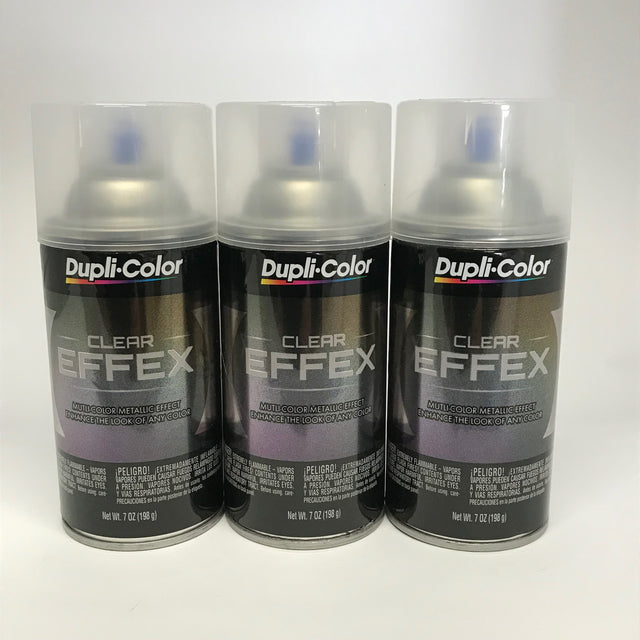The Duplicolor Clear Effex paint gives non-metallic paint a brilliant glitter effect. Dries as a clear topcoat allowing the base color it is applied over to shine through. It is formulated with tiny, brilliant metallic prism particles that change colors when exposed to various angles of light.