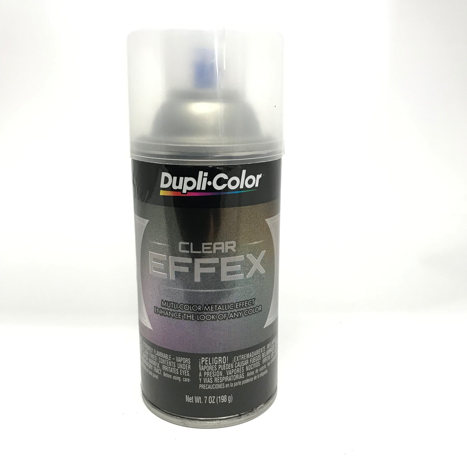 The Duplicolor Clear Effex paint gives non-metallic paint a brilliant glitter effect. Dries as a clear topcoat allowing the base color it is applied over to shine through. It is formulated with tiny, brilliant metallic prism particles that change colors when exposed to various angles of light.