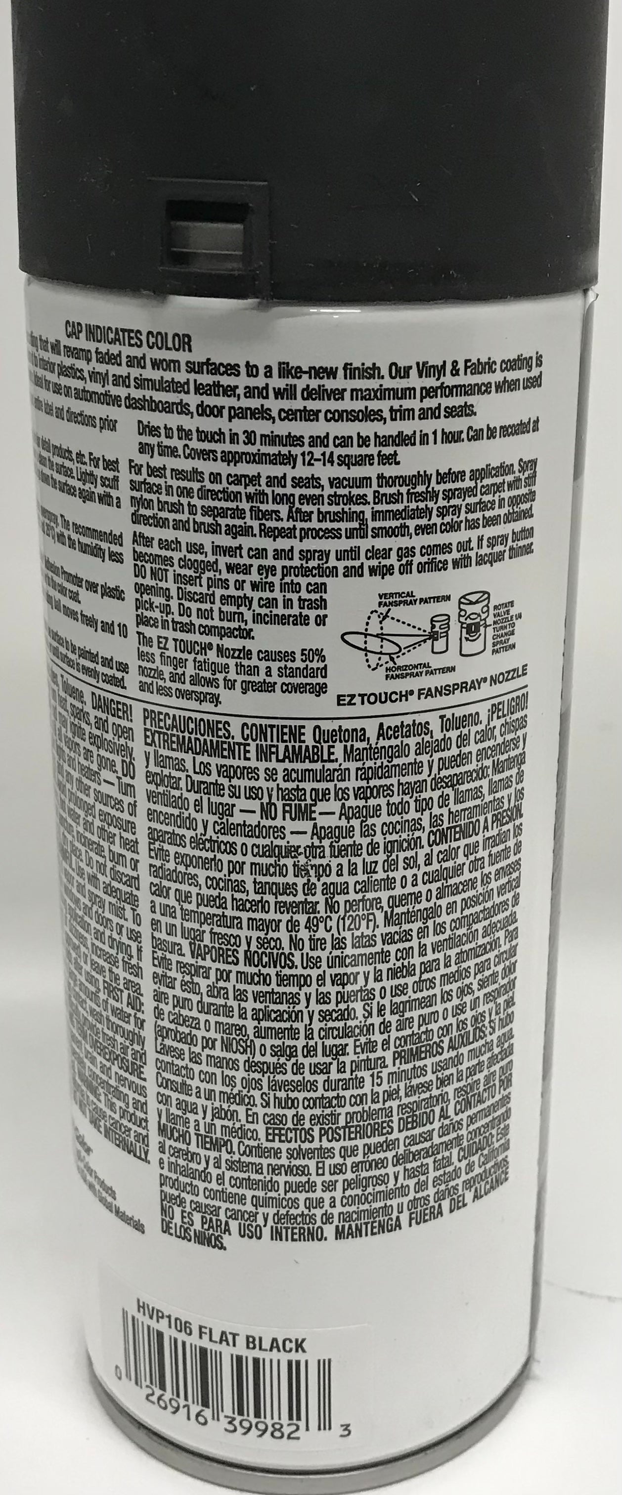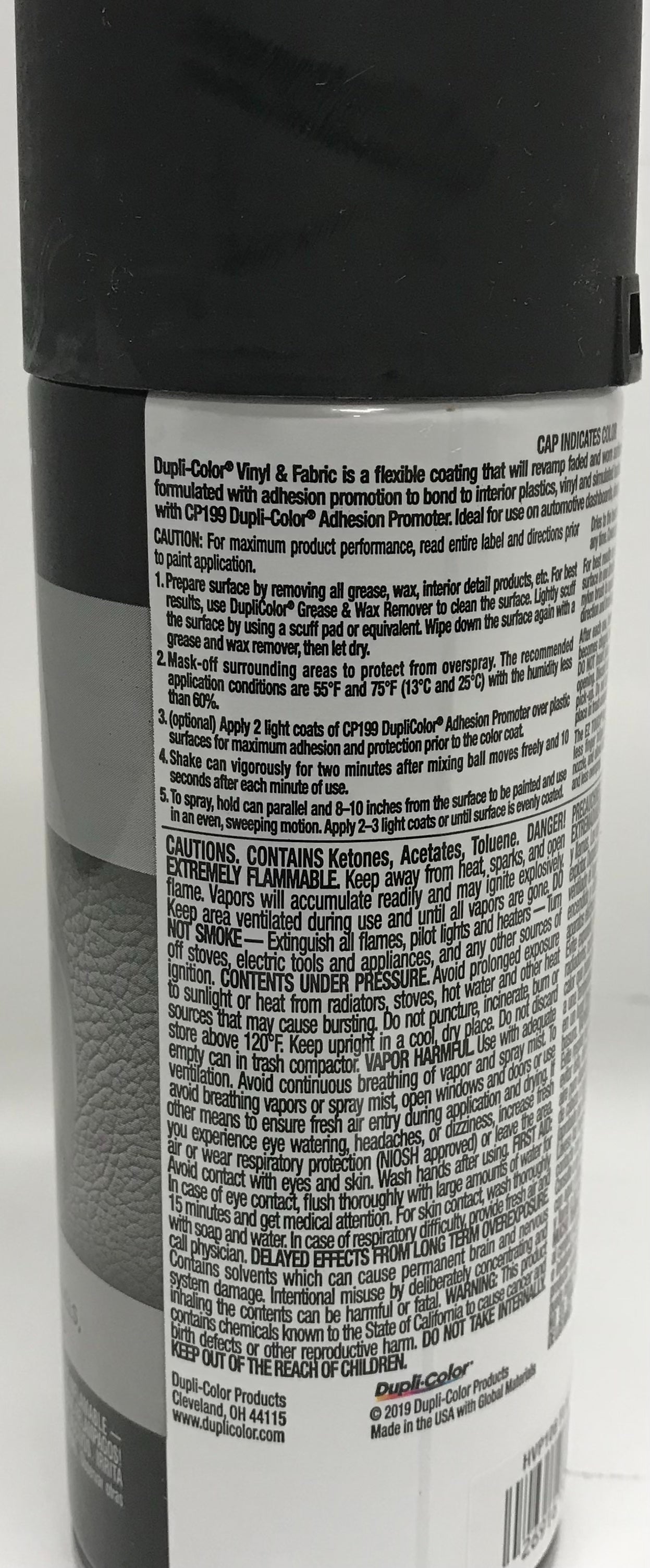 Restore or customize your interior vinyl seats, dash boards, door panels, shifter boots and consoles with Dupli-Color Vinyl & Fabric Coating. Formulated with a maximum adhesion promoter so there’s no need for primer, Dupli-Color Vinyl & Fabric Coating won’t crack, peel or chip.