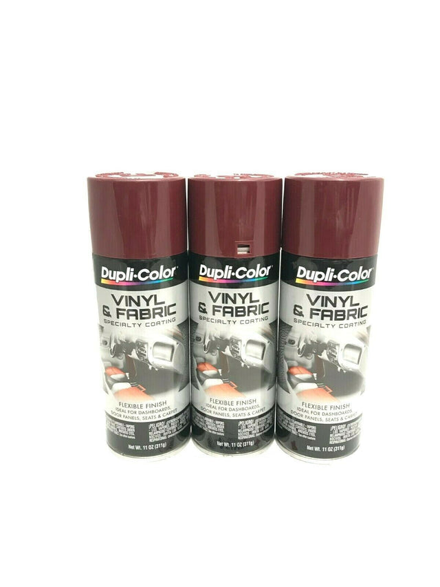 Three 11 oz aerosol cans of BURGUNDY Duplicolor Vinyl & Fabric spray paint.