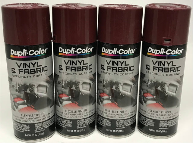 Four 11 oz aerosol cans of BURGUNDY Duplicolor Vinyl & Fabric spray paint.