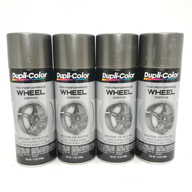 Four 12 oz aerosol spray cans of Duplicolor GRAPHITE Wheel Coating.