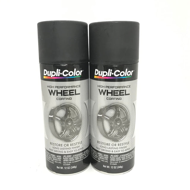 Two 12 oz aerosol spray cans of Duplicolor SATIN BLACK Wheel Coating.