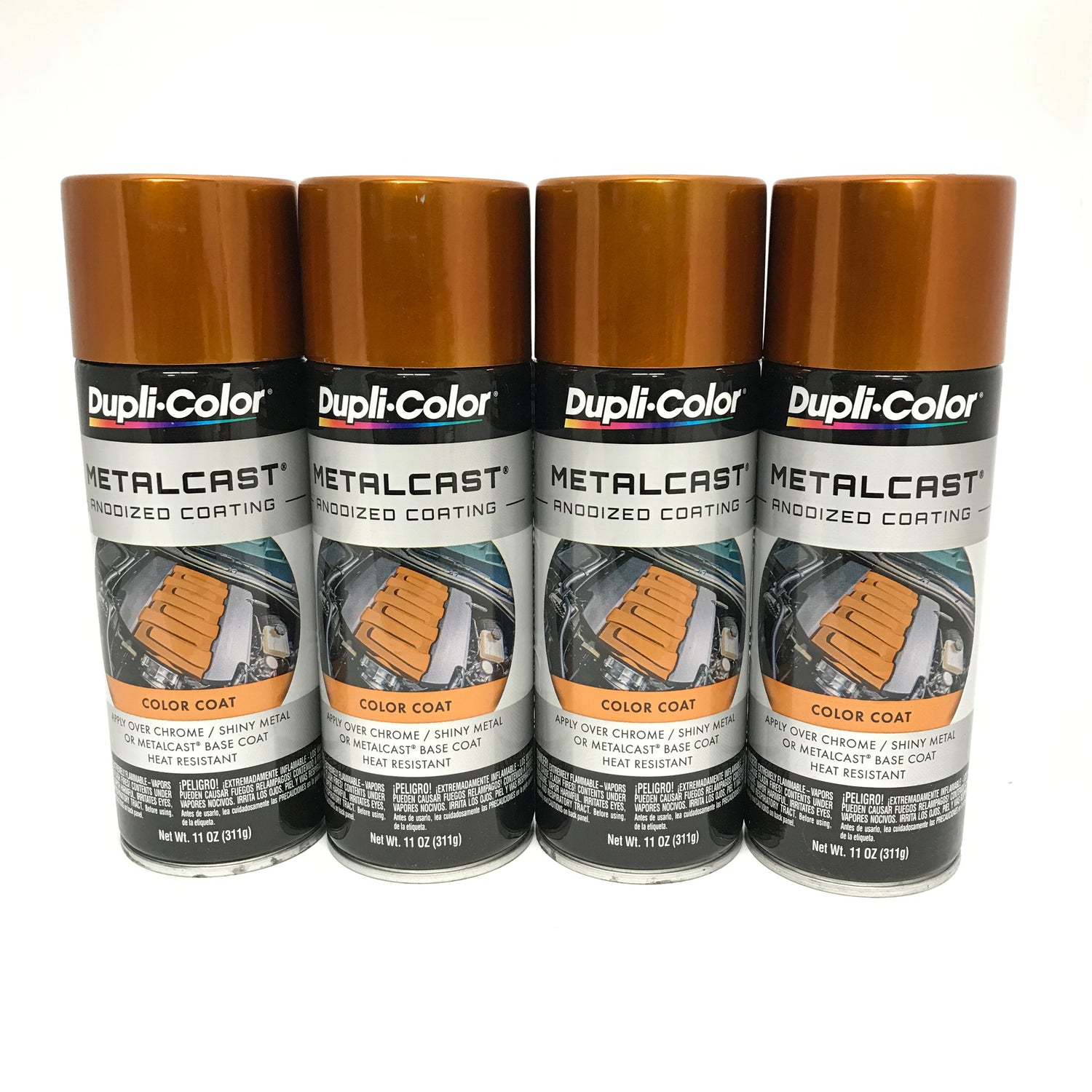 Four 11 oz aerosol spray cans of Duplicolor Metalcast Orange Copper Anodized Coating.